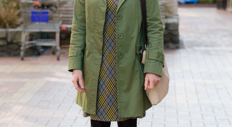 Julie Chamberlain | Age? 42 | From? Christchurch | What? Administrator | Your Style? Things that suit me that are comfortable | She’s a mod, she’s a mod, she’s a mod, yeah, yeah! Chamberlain’s 1960s-inspired look of green overcoat and plaid nautical dress is paired with ever-essential black leather boots. Her green trench coat was ideal for the unusually crisp weather, and her neutral-coloured bag, black boots and tights offset the busier pattern of her perfectly tailored dress.